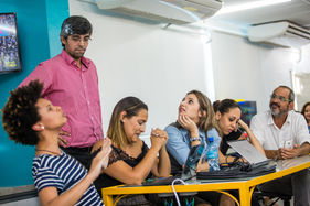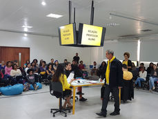 Uma de nossas modalidades é a apresentação de cenas criadas a partir da demanda dos professores\LIGAS (Saúde, Gestão, Pedagogia, Psicologia e Engenharia), atendendo aos conteúdos programáticos de cada núcleo e levando os alunos a entrar em contato com estes conteúdos de modo empático e sensorial.